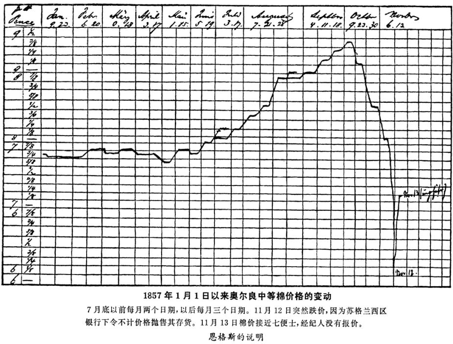 恩格斯绘制的1857年1月1日以来奥尔良中等棉价格变动表………………………………………………………………205