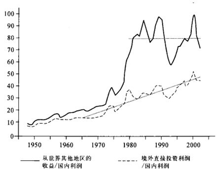 图1.9:流入美国的贡金:从世界其他地区所获利润和资本收益与国内利润的关系