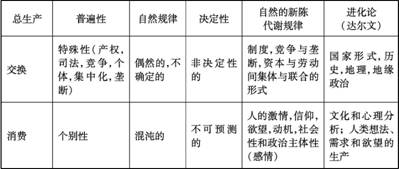 一般、特殊和个别这三个层次并不是故事的全部,还有第四个层次——普遍性——涉及与自然的新陈代谢关系。马克思对古典政治经济学家把生产视作“包裹在独立于历史之外的永恒的自然法则中”的做法表示了强烈反对。马克思反对把资本主义政治经济学“自然化”,从不放弃任何抨击这种自然主义观点的机会(包括李嘉图学派和马尔萨斯学派认为利润率注定会下降是因为自然资源的缺乏和地租上涨的观点)。马克思强调资本主义生产方式的一般性不能用自然法则的普遍性解释。