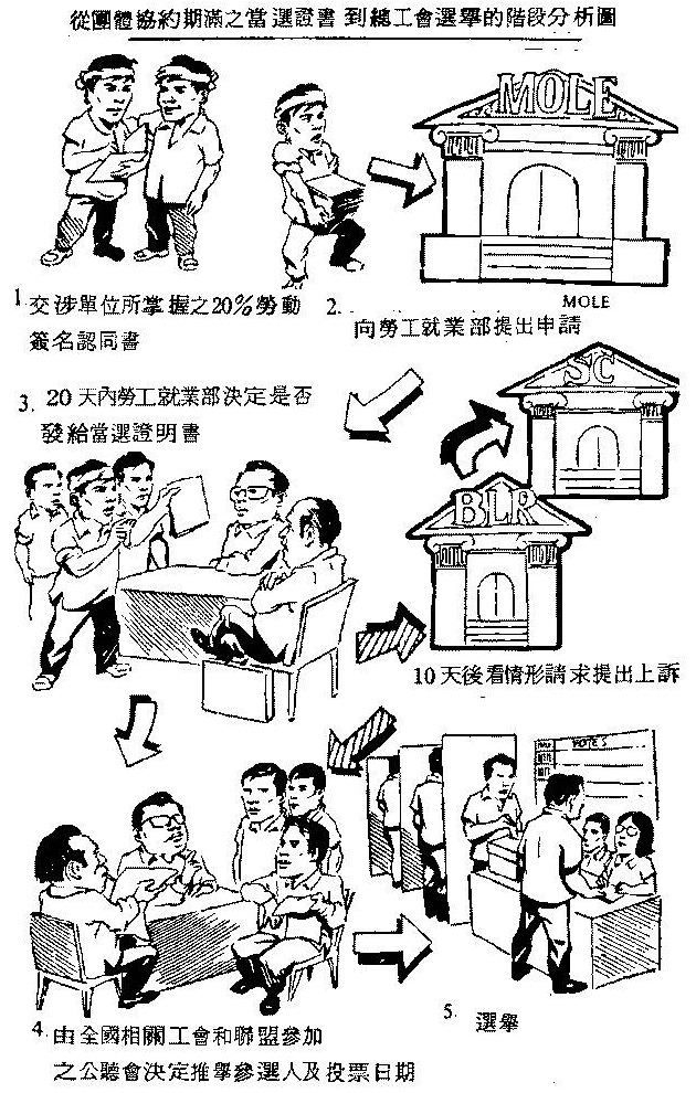 依198年部长令第9E条对劳工法第256条到261条所作的增校规定,获得选举证书的步骤如下: